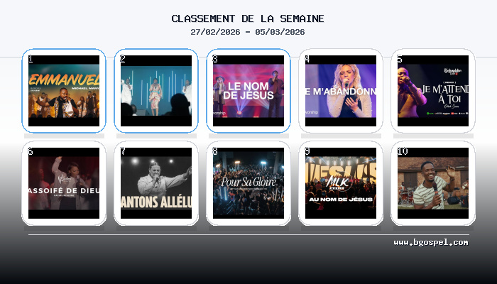 Top 10 des chansons gospel live YouTube 27 février - 5 mars 2026 : Classement officiel